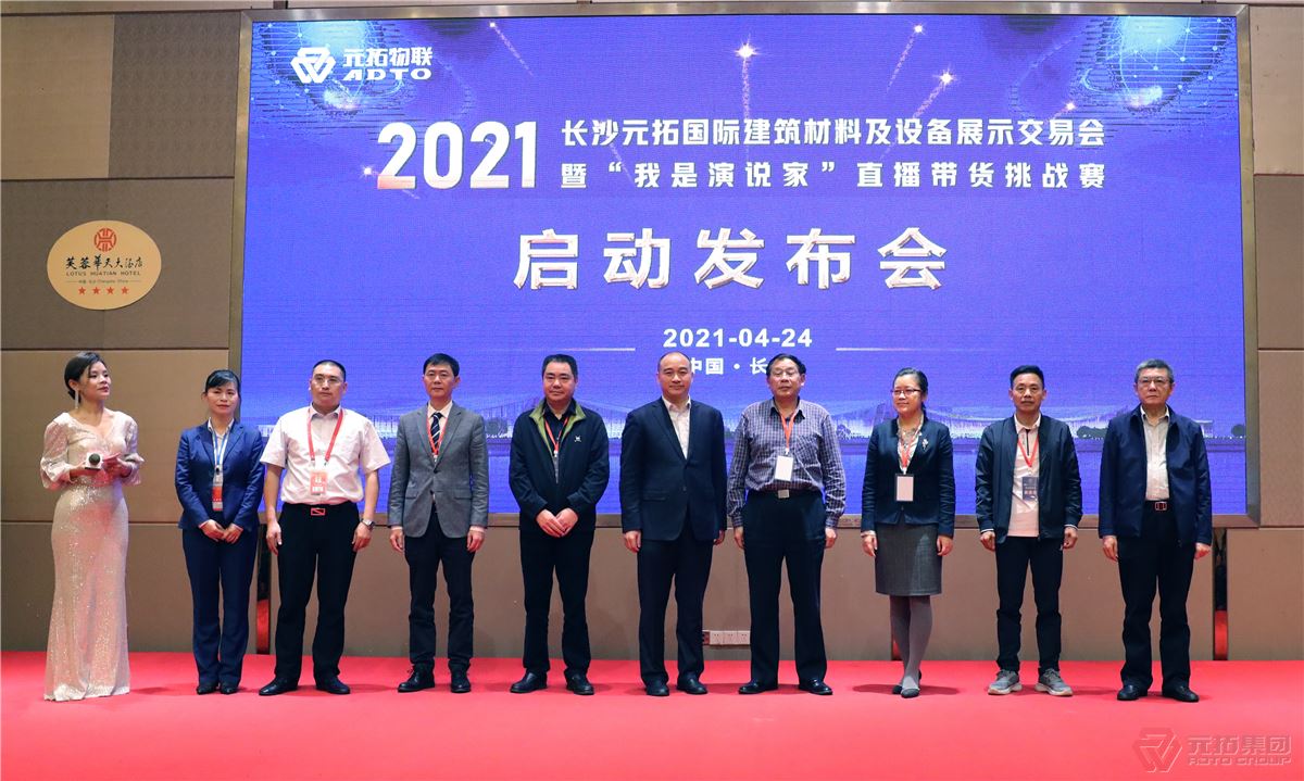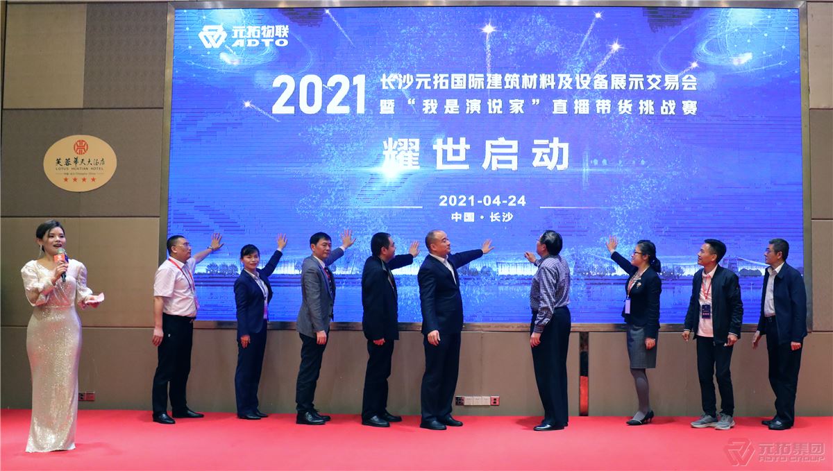 4月24日下午,2021长沙元拓国际建筑材料及设备展示交易会暨“我是演说家”直播带货挑战赛启动仪式在长沙隆重召开。湖南省商务厅、湖南省住建厅、长沙市会展办、长沙市商务局、中国建材行业商协会等政府领导及代表、元拓物联合作伙伴等320余人出席了本次盛会。
